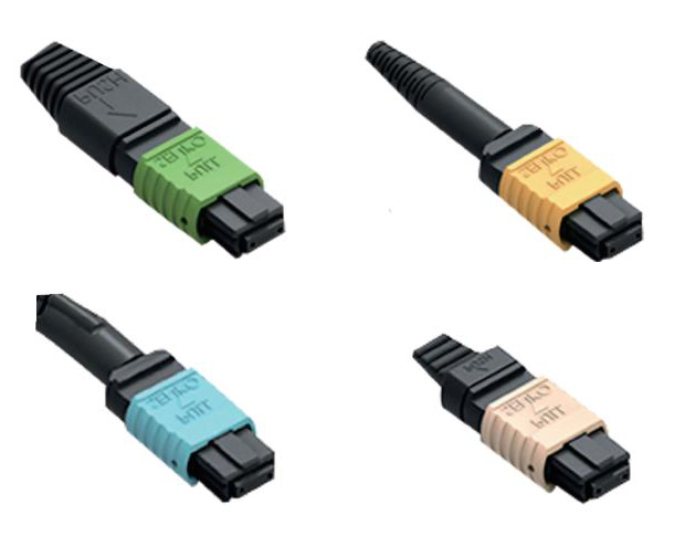 MPO (Multi-fiber Push On) 光纖跳線是由連接器和光纜組成,是一種高密度的光纖傳輸跳線。MPO 連接器為 MT 系列連接器之一,是一種多芯多通道的插拔式連接器,MT 系列的插芯都采用插芯端面上左右兩個(gè)直徑為 0.7mm 的導(dǎo)引孔與導(dǎo)引針(又叫 PIN 針)進(jìn)行精準(zhǔn)連接。它用于 2-12 芯并排光纖的活動(dòng)連接.最多可以是兩排 24 芯光纖同時(shí)連接。